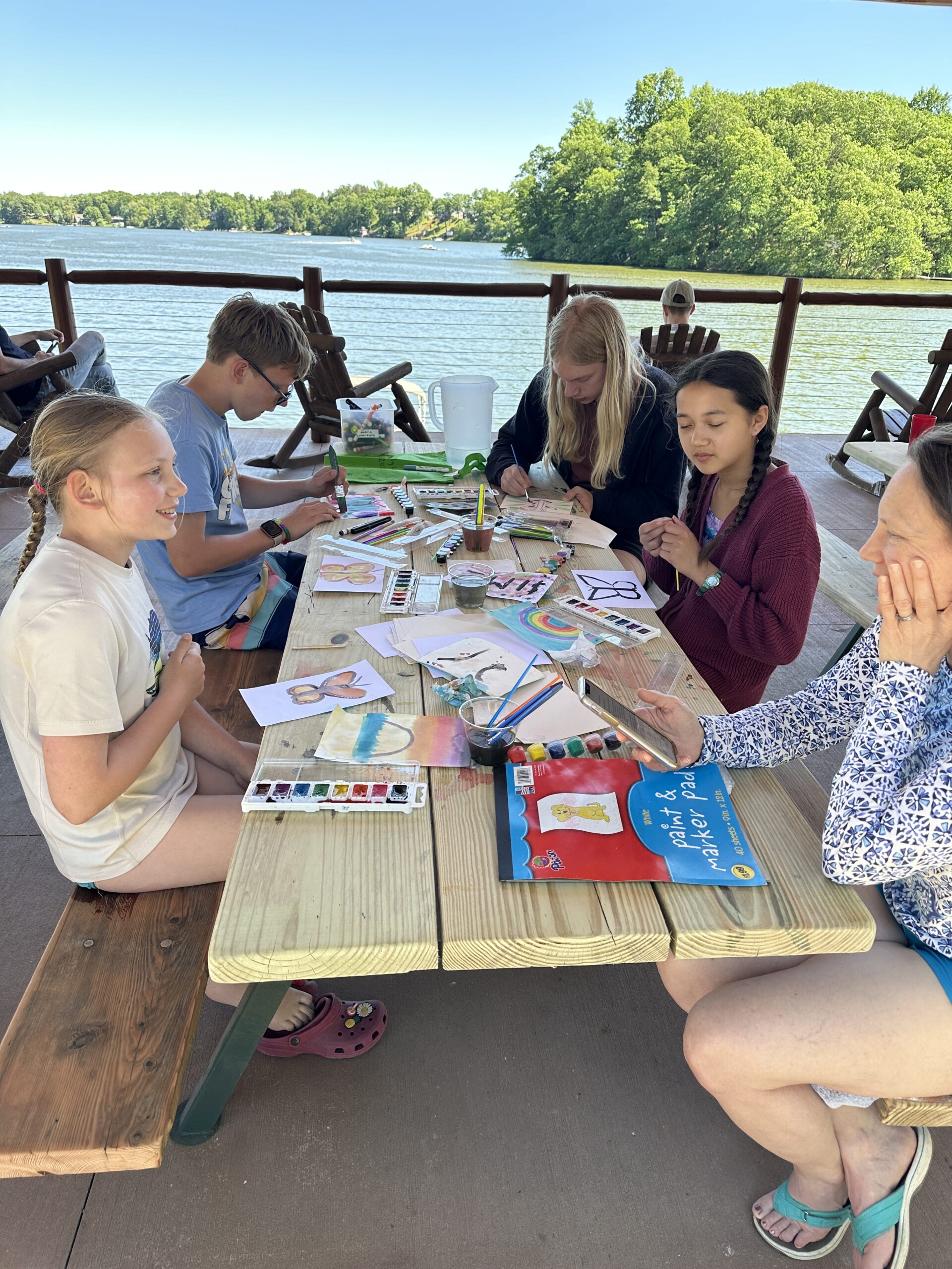 Family Camp offers serenity and adventure all at once. Participants made crafts together, including watercolor paintings and friendship bracelets, and played board games. Adventure activities included high ropes, archery, ax throwing, ziplining, a giant swing, rock climbing, pontoon boating, canoeing, island exploring and paddle boarding.