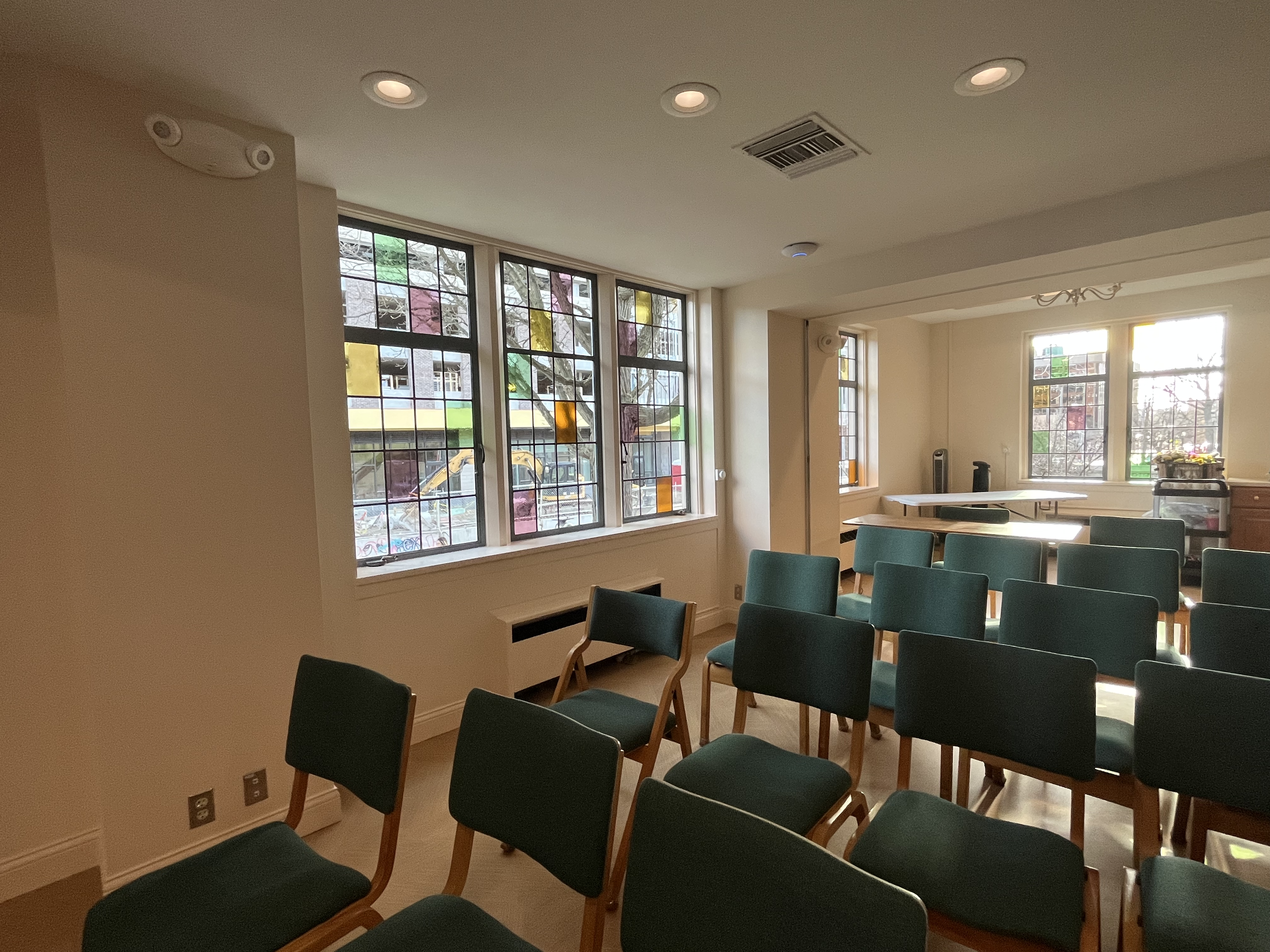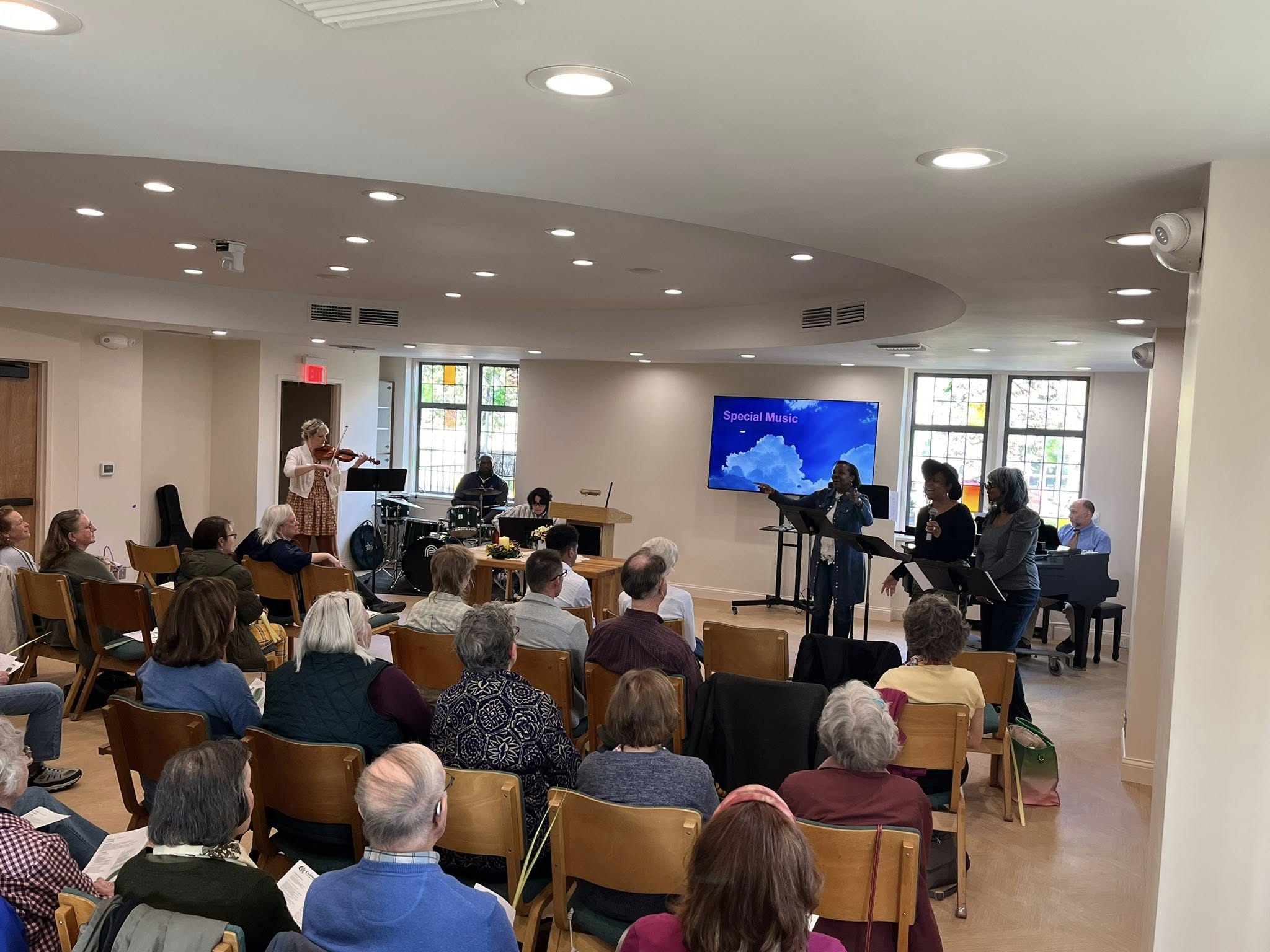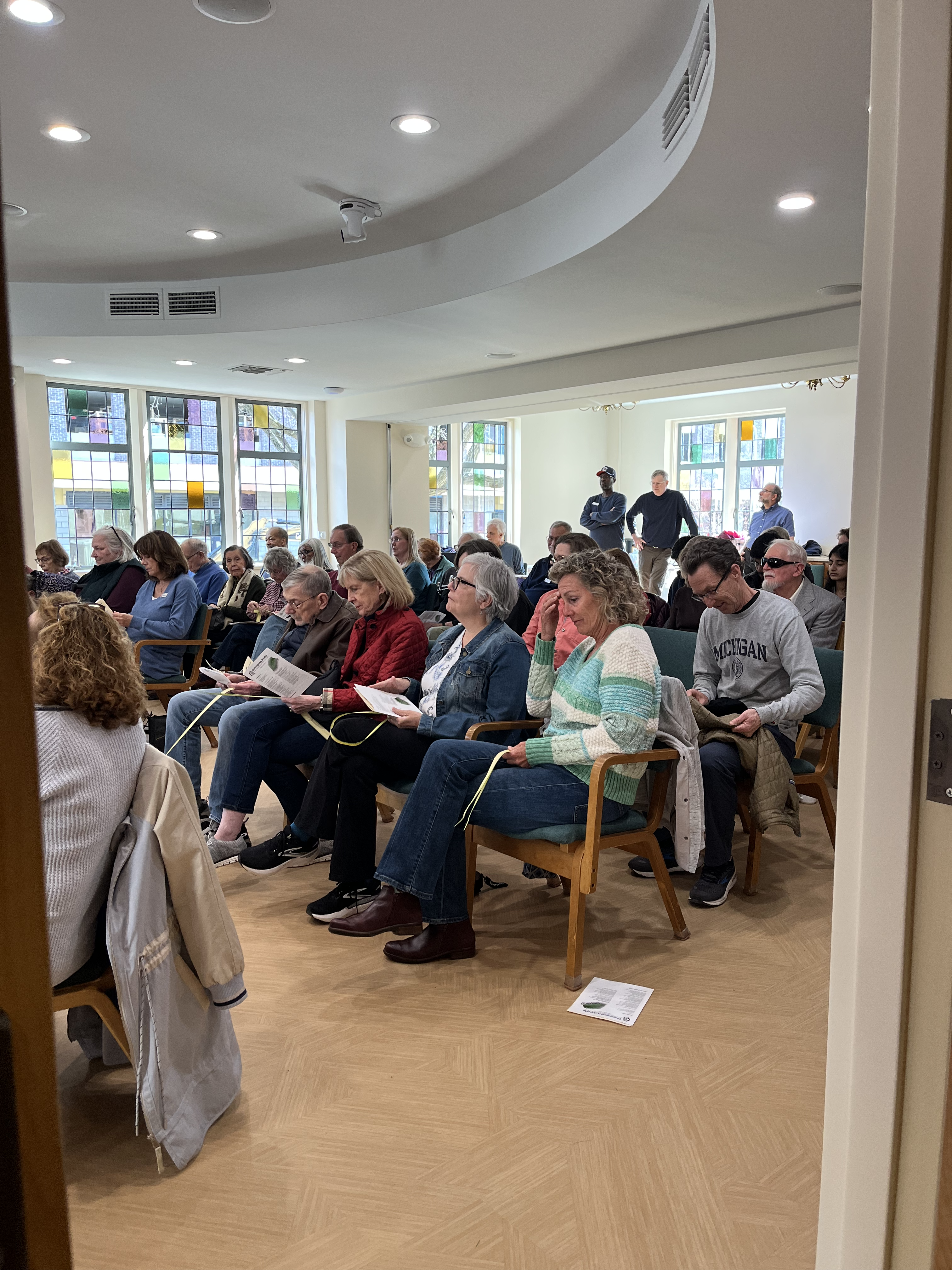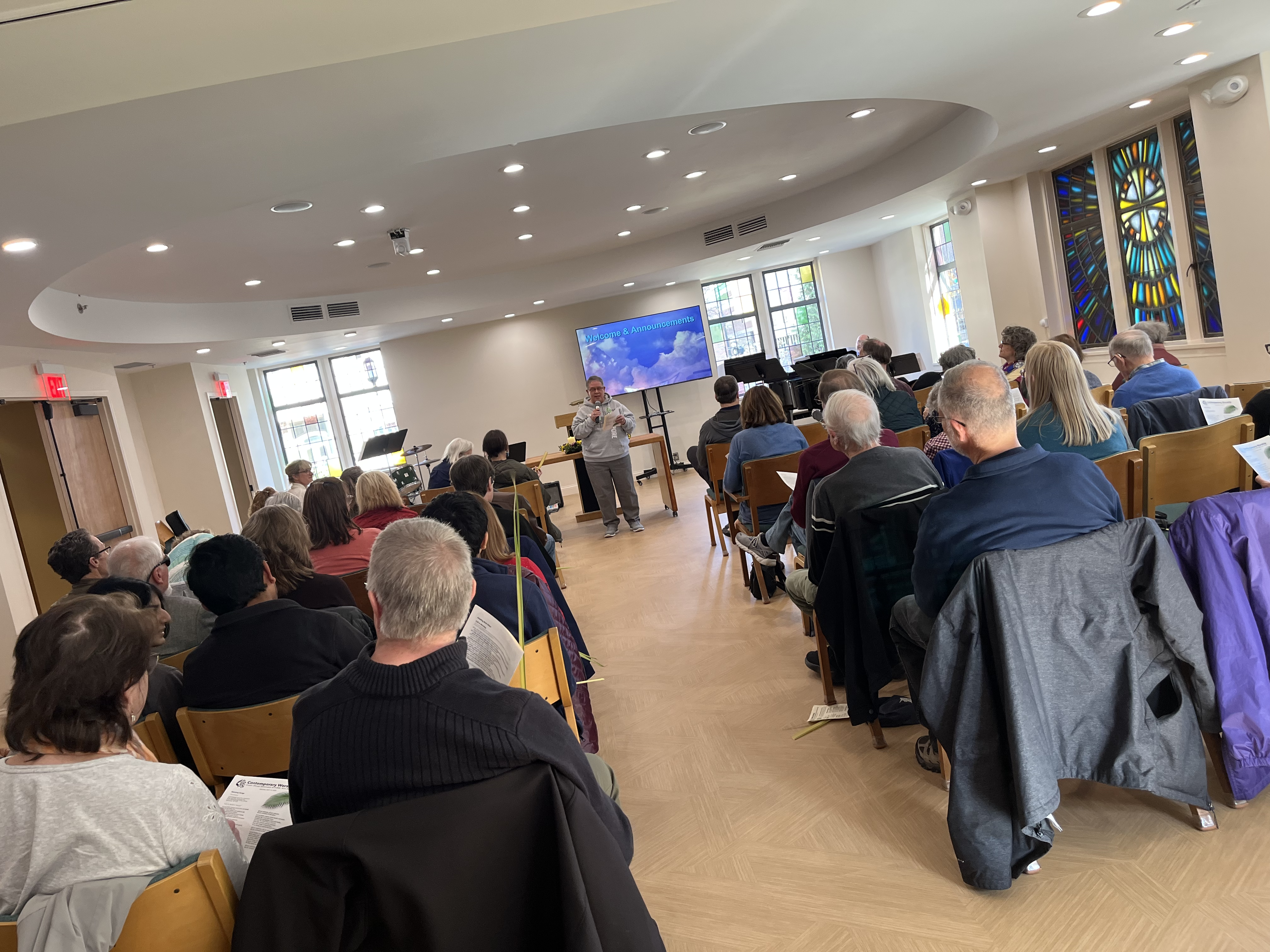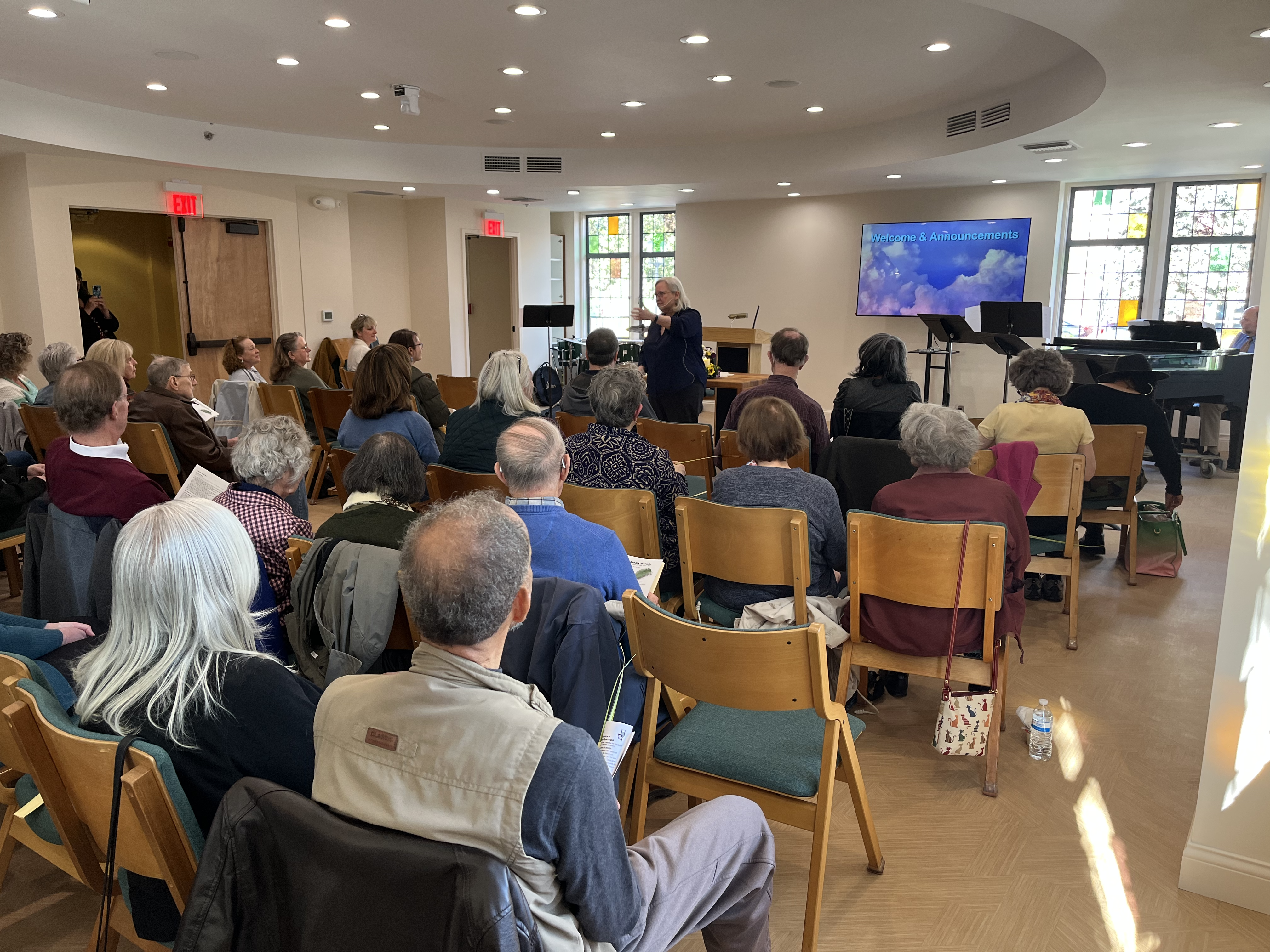 On April 5, 2025 more than 60 people gathered for the inaugural worship service in the new Green Wood sanctuary downtown! The bright new space was filled with joy and laughter.
